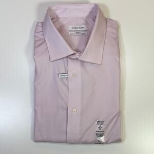 Calvin Klein Men's Steel Reg Fit Pincord Dress Shirt Pink-Lavender 18 34/35 $85
