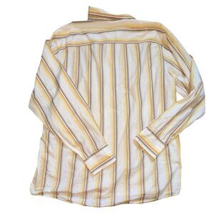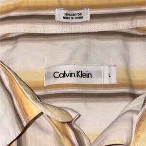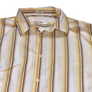 Calvin Klein Mens Striped Button Front Shirt-Yellow/White-L-GUC