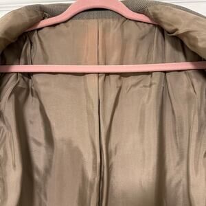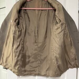 Calvin Klein Men's Tan Beige Wool 3 Front Buttons Sportscoat Blazer Jacket Size 41R. Pure new wool. Approx. measurements pit to pit 21.5 in. Shoulder to shoulder 19 in. Sleeve length 25 in. Blazer length 32 in. Does have discoloration inner lining. Pre-owned no holes.