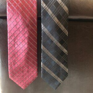 Calvin Klein Men's Ties Set of 2 Burgandy Grey Diamond Black & Grey Striped