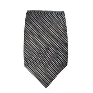 Calvin Klein Mens Vintage Gray and Brown Classic Design Striped Silk Tie
