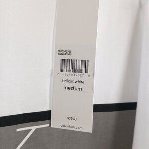 Upgrade your casual style with this Calvin Klein Men’s White Logo T-Shirt in size Medium (M). This classic fit cotton tee features a subtle light gray Calvin Klein logo on the chest for a clean, modern look. The shirt is brand new with tags (NWT), never worn, and in excellent condition—no defects, flaws, or stains. A versatile wardrobe essential perfect for everyday wear, layering, or casual outings.