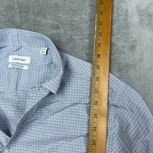 Calvin Klein Mens Wrinkle-Free Checkered Dress Shirt Regular Fit Stretch a1036