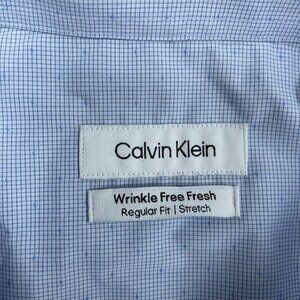 Calvin Klein Mens Wrinkle-Free Dress Shirt XL Regular Fit Blue a1260