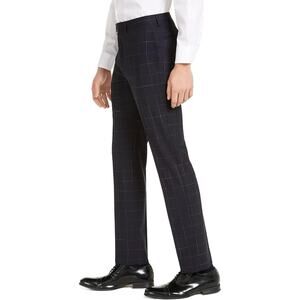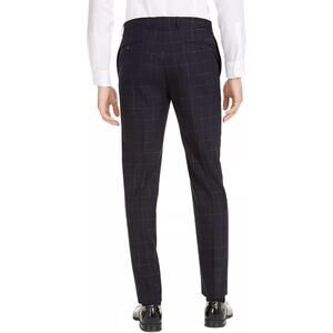 Calvin Klein Men's X-Fit Extra-Slim Fit Infinite Stretch Windowpane Wool Suit Pants (Navy, 34Wx32L)