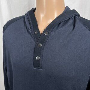 Calvin Klein Men's XL Navy Blue 100% Cotton Long Sleeve Hooded Henley Shirt