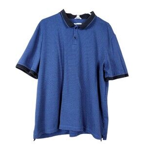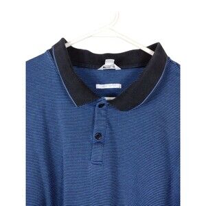 Calvin Klein Mens XXL Polo Cahual Shirt Golf Liquid Cotton Black Blue Stripes