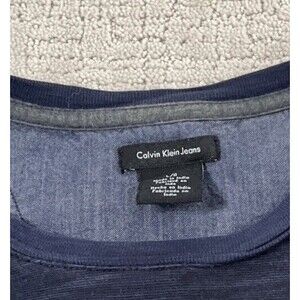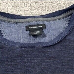 Calvin Klein Mens Zipper Pocket Long Sleeve Shirt Navy Armada Size Large