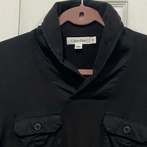 Calvin Klein men long sleeves knit pullover shawl collar front flap pockets with buttons size small