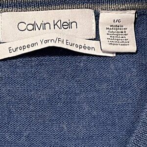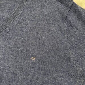 Calvin Klein Merino Wool Blend Sweater Blue V-Neck Long Sleeve Size Large