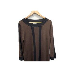 Calvin Klein Merino Wool Blend Sweater Dress Black Brown Size Large Classic