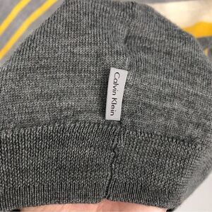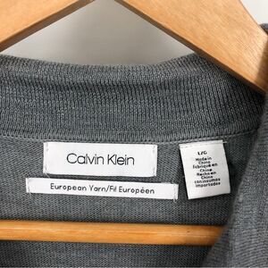 Calvin Klein gray with yellow stripes merino wool blend henley sweater with collar. Size mens Large.
