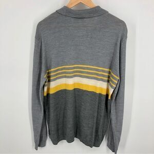 Calvin Klein Merino Wool Henley Sweater Mens Large Gray Yellow Stripe