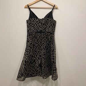 Calvin Klein Mesh Embroidered Spider Web V-Neck Whimsygoth Cocktail Party Dress