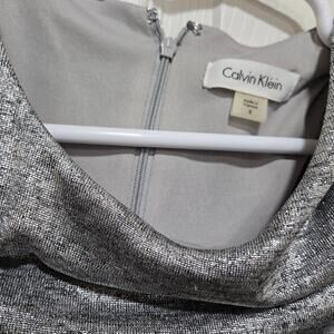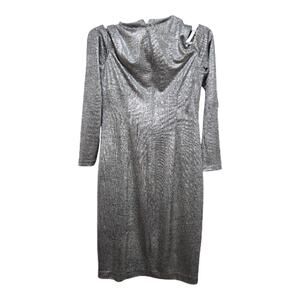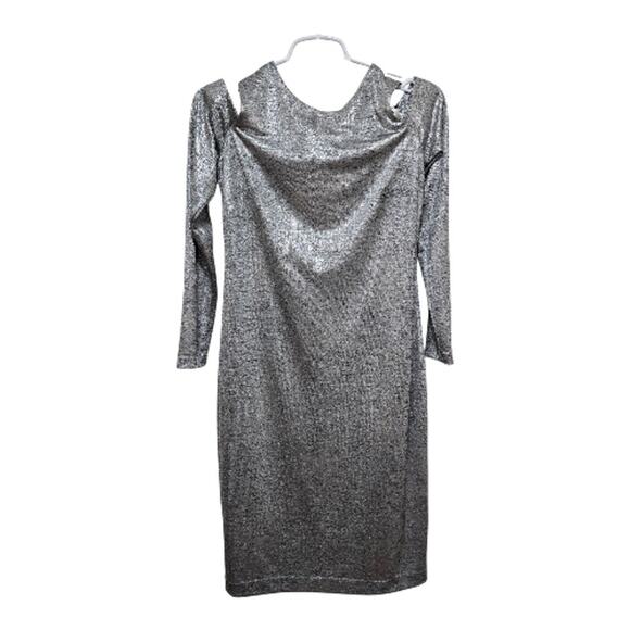 Calvin Klein Metallic Cold Shoulder Sheath Dress Silver Size 8