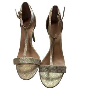 Calvin Klein Gold Metallic T-,Strap Heels, Size 8 (M)