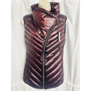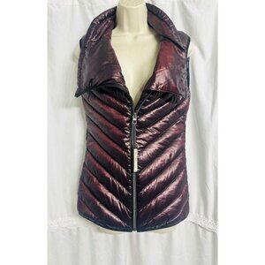 Calvin Klein Metallic Puffer Asymmetrical Zip Chevron Quilted Design Vest XS