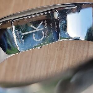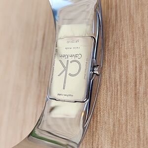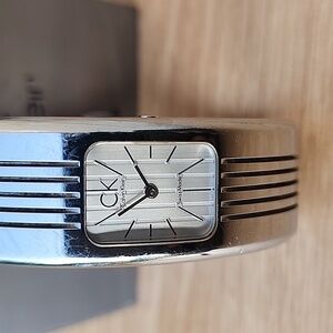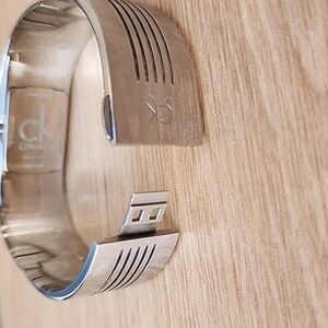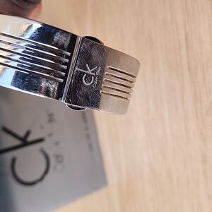 Calvin Klein Metallic Silver Fractal Women's Bracelet Cuff Wristwatch in good used condition.