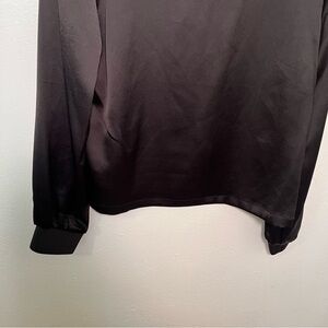 Great condition, minor wear to neckline. Calvin Klein Metallic Trim Long Sleeve Satin Blouse. Black. Lustrous satin gets a little extra shimmer with metallic ribbed trim at the neckline of this Calvin Klein top.
