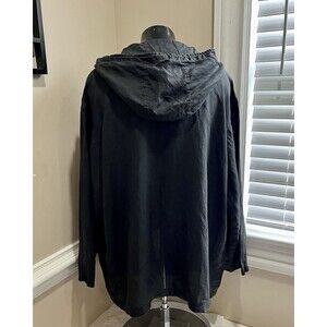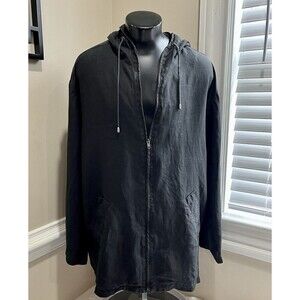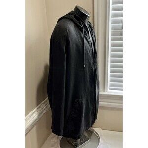 Calvin Klein Mid Length Jacket L Mens Black Full Zip Hooded Sun Faded Matrix