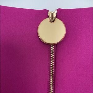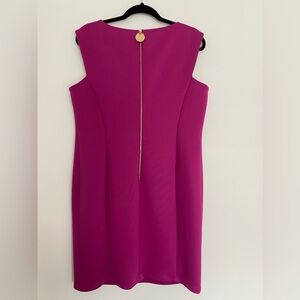 Calvin Klein Midi Dress 16P Magenta Pink Sheath Office Attire Classic Gold Zip