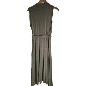Calvin Klein Midi Dress Green Sleeveless V-Neck Size 10 Tie Waist