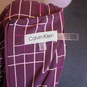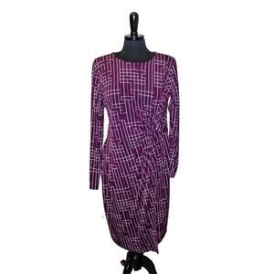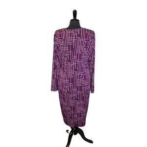 Calvin Klein Midi Dress Long Sleeve Geometric Print Purple Size XL