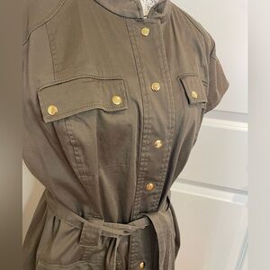 Calvin Klein Military Style Dress Size 14 in Olive Green. Totally stylish. Polished look. Belted waist. Excellent condition. Well cared for piece.