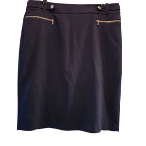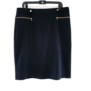 Calvin Klein Mini Pencil Skirt Women's 14 Black Gold Accent Zip Button Polyester