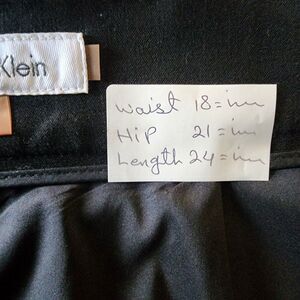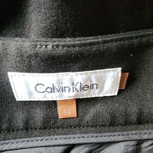Calvin Klein Mini Pencil Skirt Women 14 Black Gold Accent Zip Button Polyester.