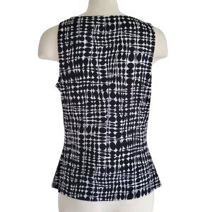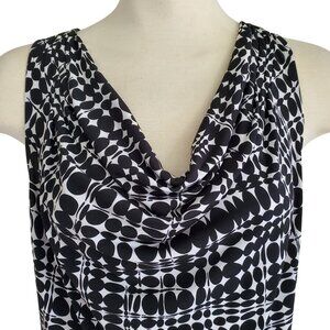 Calvin Klein Mod Print BW Drape Neck Sleeveless Blouse Great for Under Suit