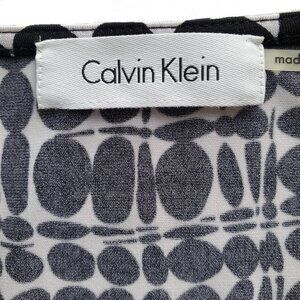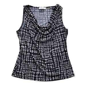 Calvin Klein Mod Print BW Drape Neck Sleeveless Blouse Great for Under Business Suit S