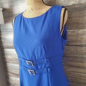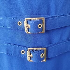 Calvin Klein Modern Atlantis Double Buckle Gold Waist Dress Cobalt Blue 10P *