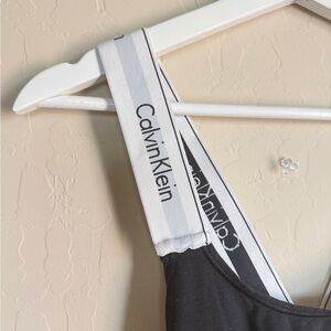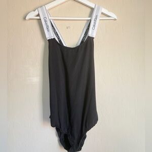 Calvin Klein Modern Black Logo Bodysuit Racerback Strappy Criss Cross Women Med