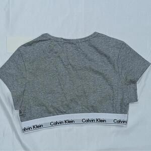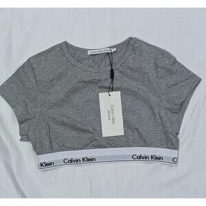 Calvin Klein Modern Cotton T-Shirt Bralette Crop Top Gray Logo Band NWT L