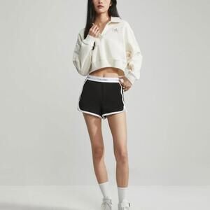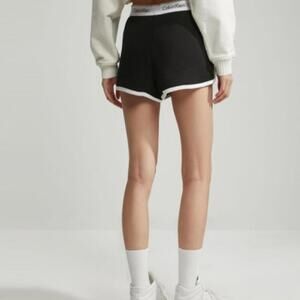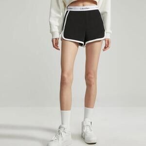 Step up your casual style with these Calvin Klein Modern Gravity Band Casual Shorts in women’s size M. These classic black shorts feature a contrasting white trim and a comfortable Calvin Klein logo elastic waistband for that signature, sporty look.