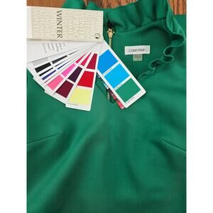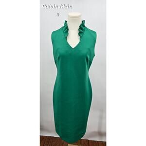 Calvin Klein Modern Green Ruffled V Neck Scuba Sheath Dress