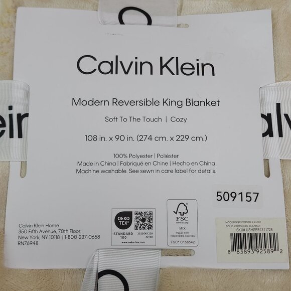 Calvin Klein Modern Reversible Plus King Blanket 108" x 90" Soft Cozy Polyester