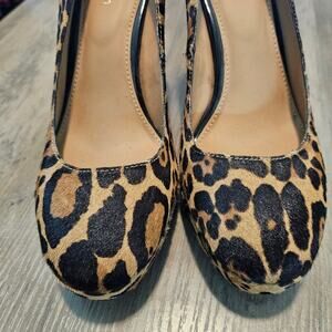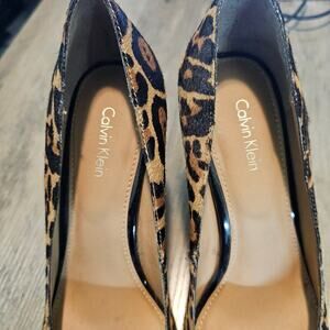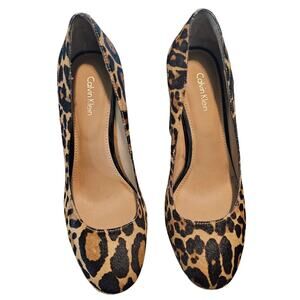 Calvin Klein Monika Heels Womens Size 7 Leopard Print Platform Leather Glam Sexy