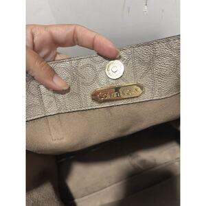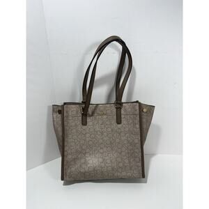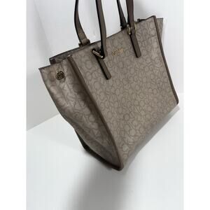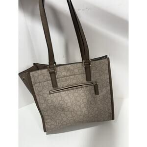 Calvin Klein Monogram Tote Bag CK with Leather Straps Gray Purse