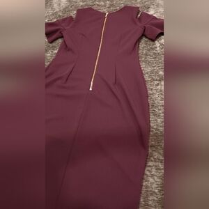This Beautifull Calvin Klein Women's Dress in Mulberry Purple, is a stylish and elegant choice for any special occasion. With a peekaboo shoulder design and a knee-length fit, this pencil dress is perfect for parties or cocktail events or even work. The dress features a solid pattern, a zip closure. Whether it's for a winter, summer, fall, or spring event, this designer dress by Calvin Klein is sure to make a statement.