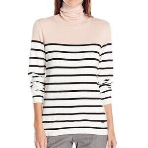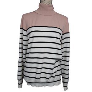 Calvin Klein | Multi Color Striped Turtleneck Sweater White Pink Black | Size L