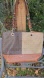 Elegant Calvin Klein tote with a blend of brown and tan tones. Features signature logo pattern. Ideal for versatile styling.