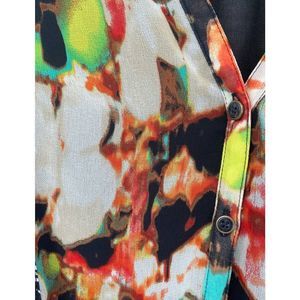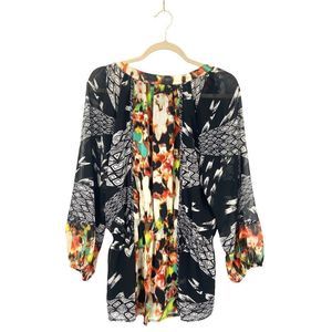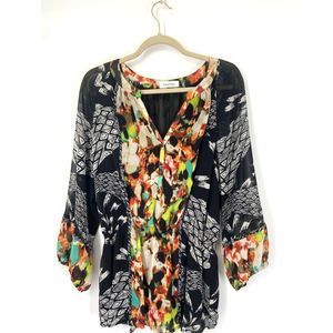 Calvin Klein Multicolor Printed Long Sleeves Smocked Waist Top Large