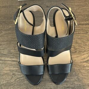 Calvin Klein NEW Black Matte and Snake Print Heels with Gold Buckle