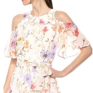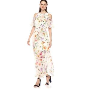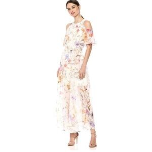 Calvin Klein NEW Cold Shoulder Maxi Floral Dress Self Sash Waist Womens size 10P