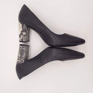 - Black & white snake print heel