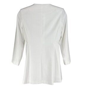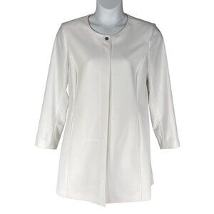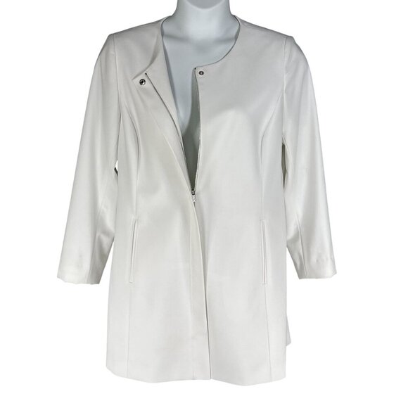Calvin Klein NEW Women 14 White Collarless Zip Front Long Blazer Jacket Timeless