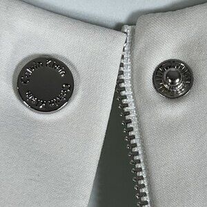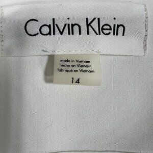 calvin klein jacket womens white jacket zip front blazer collarless jacket modern white coat size 14 jacket minimalist outerwear white spandex coat white polyester coat classic formal wear tailored white blazer elegant womens jacket chic Calvin Klein jacket