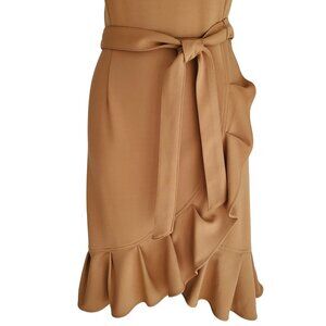 Calvin Klein NWT Career Dress Tulip Hem Tie Front Short Sleeve Deep Tan Size 4